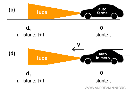 -Se accendiamo i fari di un’automobile ferma, anche in questo caso la luce arriverà dopo un preciso istante di tempo, ad una determinata distanza d1.